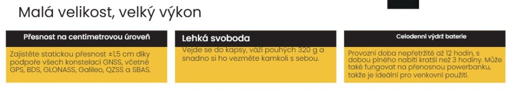 Kompaktní GNSS přijímač s centimetrovou přesností, hmotností 320 g a podporou všech hlavních konstelací. Více