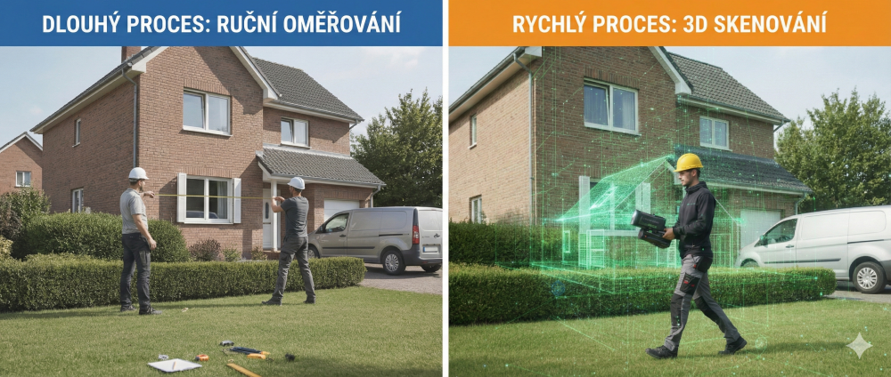 Rychlé 3D skenování: Namísto hodin s metrem projdeme vaši nemovitost se skenerem. Ten vytváří „mračna bodů“ a zachycuje prostor v reálném čase.